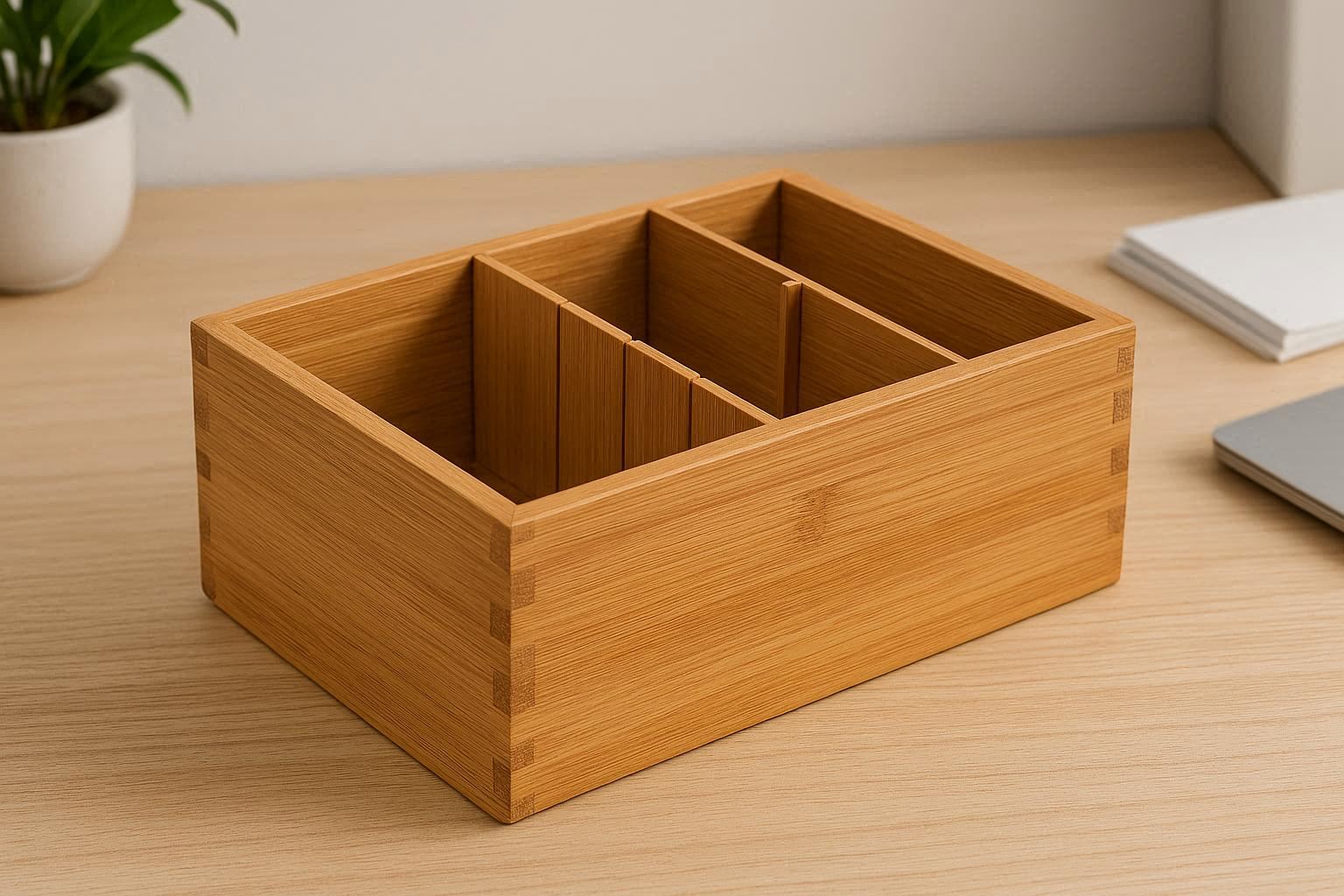 Perfect for eco-conscious consumers, this bamboo storage box is ideal for organizing office supplies, craft materials, or personal accessories. It??s also a thoughtful gift for colleagues or friends who appreciate sustainable products. Whether used in a home office or creative studio, it combines practicality with natural beauty to keep your desk tidy.