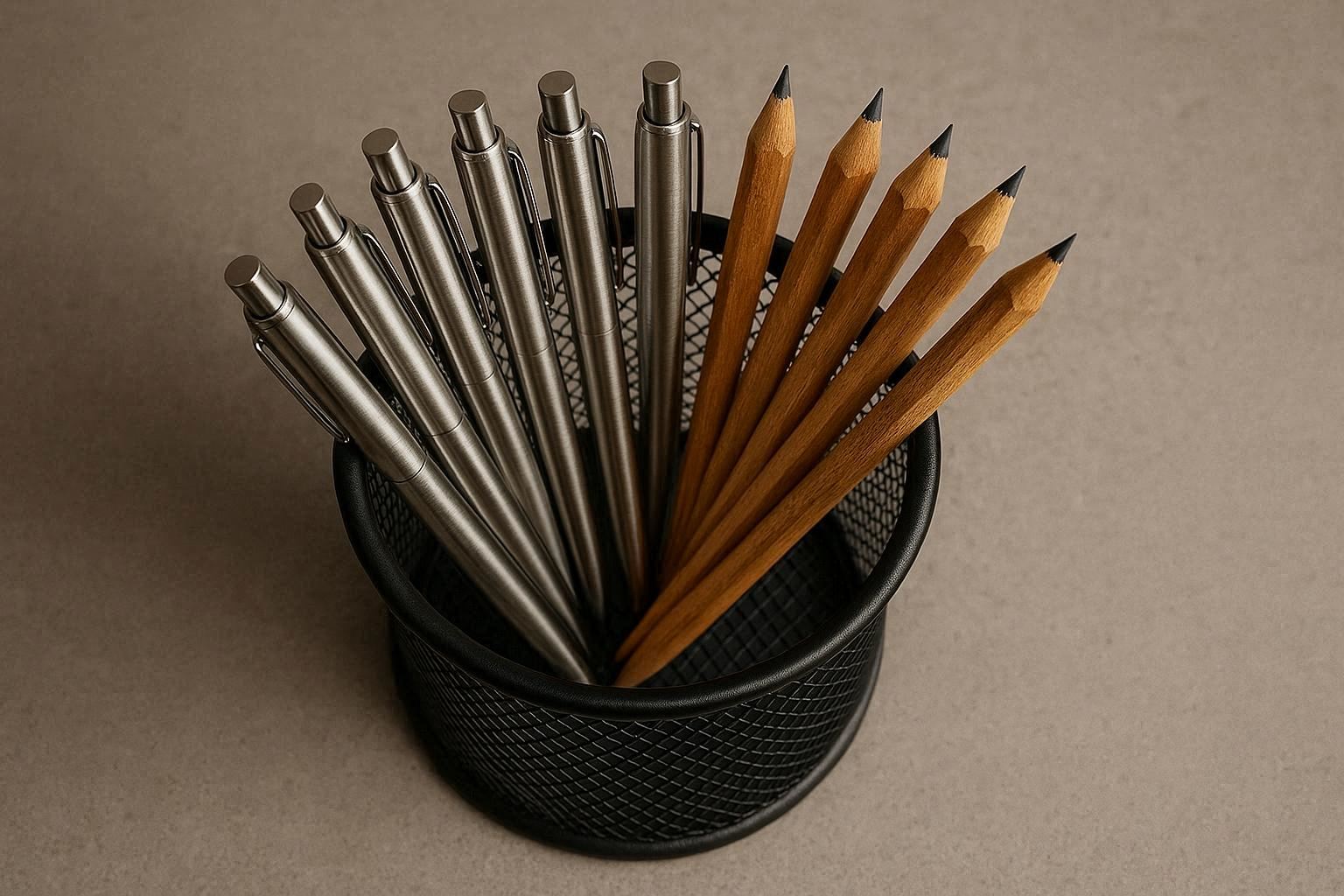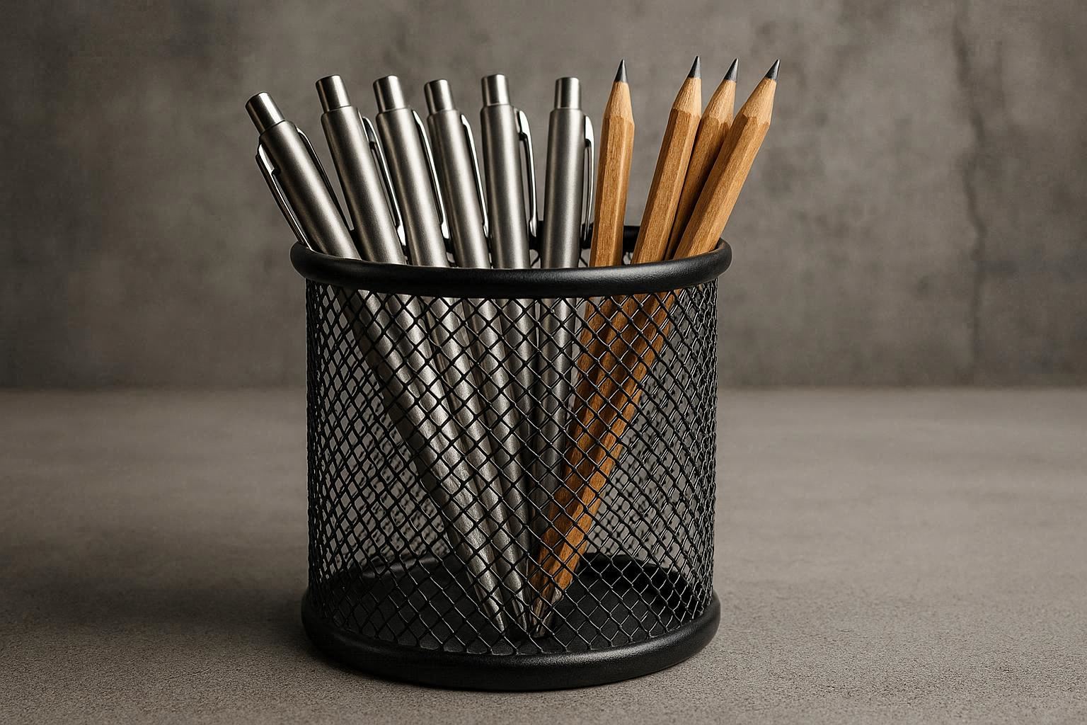 The cylindrical shape provides ample space for pens, pencils, markers, and even small tools like screwdrivers or scissors. The weighted base prevents tipping, and the smooth edges ensure safe handling. It??s easy to clean with a dry cloth or brush, removing dust and debris from the mesh openings.