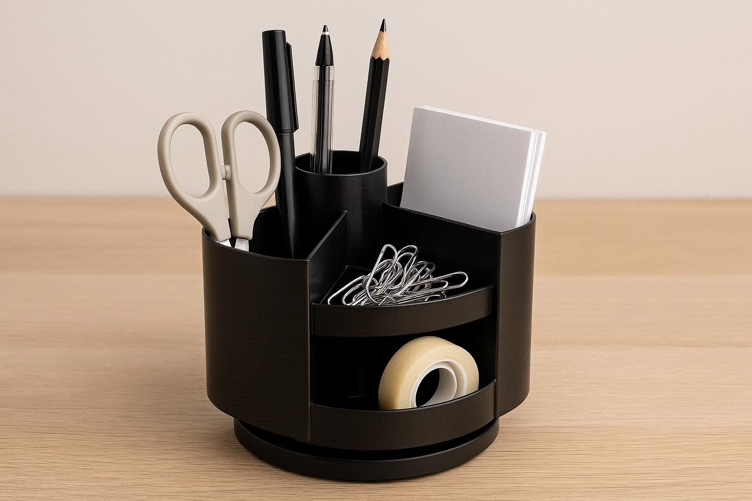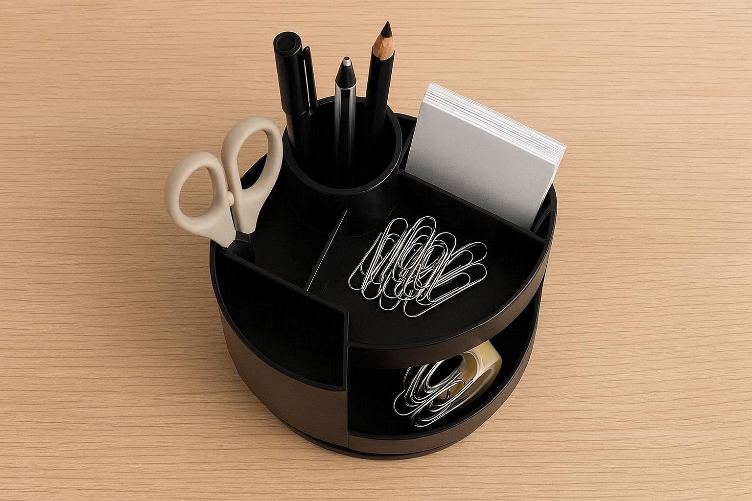Perfect for busy professionals, students, or artists, this rotating organizer keeps essentials within reach while reducing clutter. It??s also a great gift for anyone who values convenience and efficiency. Whether used to organize office supplies or art materials, its innovative design makes it easy to find and access tools quickly, enhancing productivity and reducing stress.